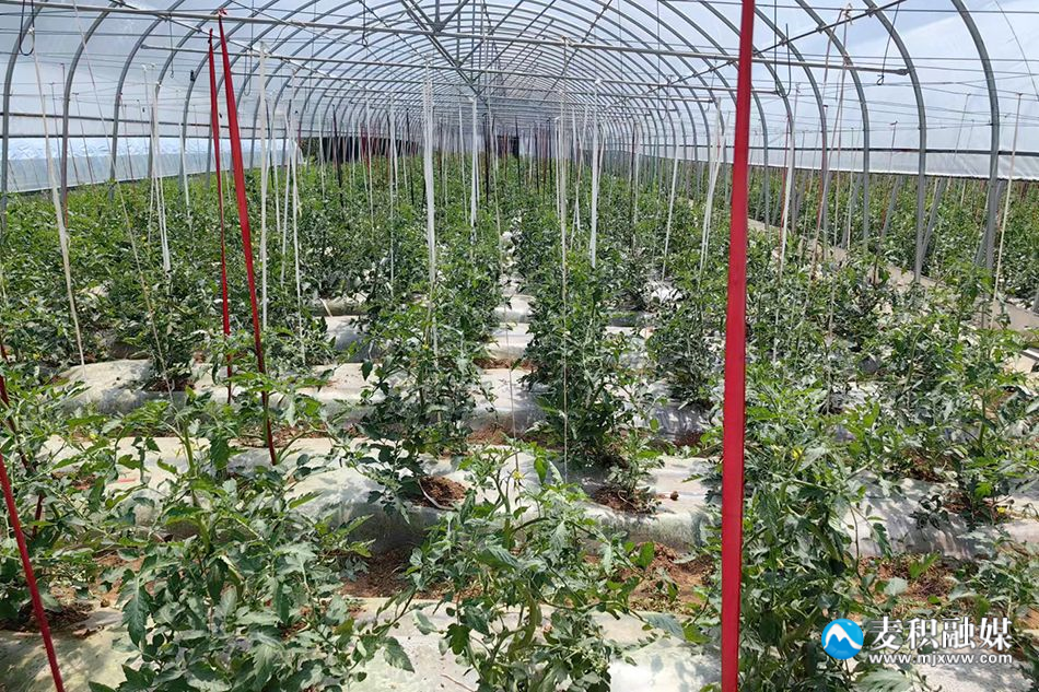 “我們一共有17個大棚,十棚西紅柿、四棚辣椒、兩棚圣女果、一棚黃瓜。目前黃瓜正在采摘期,再過10多天西紅柿就可以采摘了,F(xiàn)在我們的工作是澆水、施肥、打藥,再就是打岔、除草。”工作人員楊林珠說。