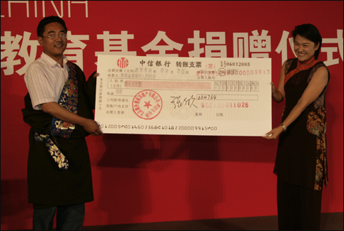 7月5日,為改善青海省黃南藏族自治州的教育發(fā)展,SOHO中國有限公司捐贈1000萬元人民幣活動儀式在北京舉行!斑@次捐款主要用于當(dāng)?shù)貙W(xué);A(chǔ)教育建設(shè),”青海省黃南藏族自治州副州長阿更登表示,“一次接受這么多的捐款,對我們州來說是第一次,對青海省來說也是第一次!