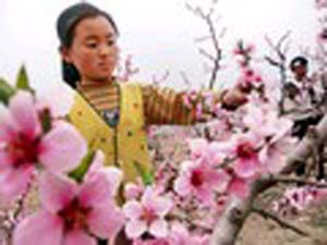 甘肅天水秦安劉坪鄉(xiāng)鄧坪小學(xué)學(xué)生正在自家地里為桃樹疏花。據(jù)悉,目前,全鄉(xiāng)發(fā)展以桃、蘋果為主的果園面積28,000畝,建成了何灣萬畝無公害優(yōu)質(zhì)桃生產(chǎn)基地。(中國新聞圖片網(wǎng)/周文濤)