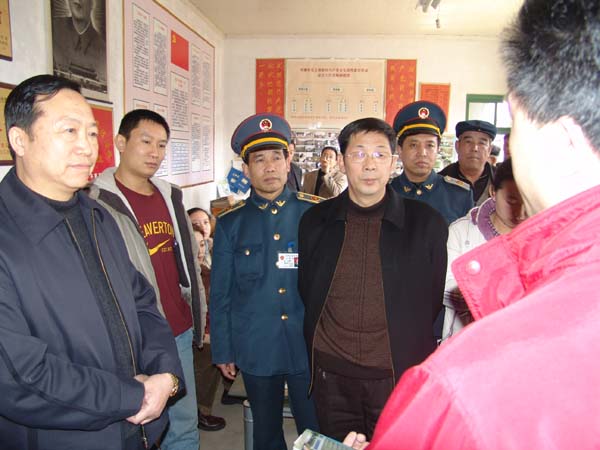 省工商局副局長張輝(左一)、市工商局局長劉養(yǎng)民(左四)、秦安縣工商局局長曲鵬云(左三)、副局長亢建設(shè)陪同媒體記者現(xiàn)場采訪