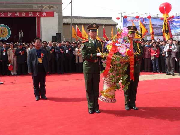 各界代表向女媧塑像敬獻花籃