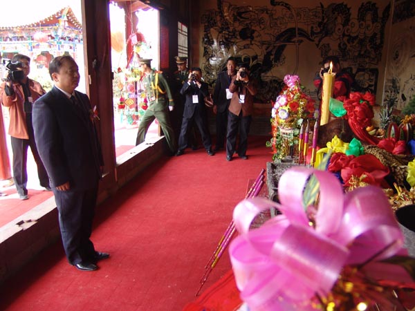 天水市市長張廣智向女媧塑像行三鞠躬禮