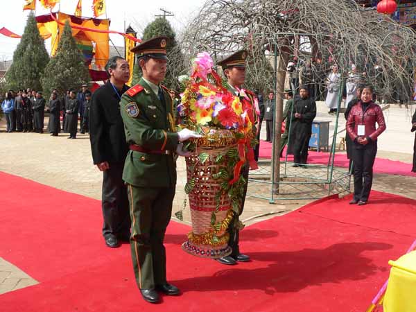 天水市委書記、市人大常委會主任趙春向女媧塑像敬獻花籃