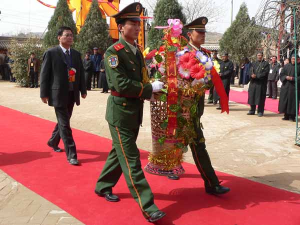 秦安縣委書記陳天雄向女媧塑像敬獻花籃