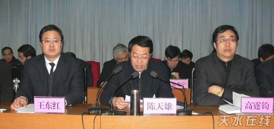 縣委書(shū)記陳天雄在講話中說(shuō),這次全縣工作會(huì)議,是在全縣上下深入學(xué)習(xí)貫徹黨的十七大精神,全面推進(jìn)富裕、民主、文明、和諧秦安建設(shè)的關(guān)鍵時(shí)刻召開(kāi)的一次非常重要的會(huì)議。各鄉(xiāng)鎮(zhèn)、各部門(mén)、各單位在新的一年里要再添措施,再鼓干勁,爭(zhēng)先創(chuàng)優(yōu),扎實(shí)工作,為加快全縣經(jīng)濟(jì)社會(huì)健康持續(xù)發(fā)展做出新的更大貢獻(xiàn)。