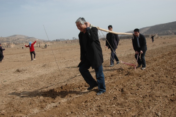 縣委書記陳天雄,在縣委副書記程江芬、縣人大副主任魏天乙等縣上領導的倍同下,輕車減從,帶領農牧、林業(yè)、水利、扶貧等農口有關部門的負責人,也來到了徐洼村千畝優(yōu)質蘋果示范基地,一邊與村民搭話,開展調查研究,了解去年的收入情況,一邊給群眾講解玉米全膜雙壟溝播栽培技術,指導科技種田。陳天雄書記說著,就挽起褲褪,脫掉外衣,扛起步犁,起壟覆膜,大家也跟著紛紛干起來。村民徐三商感嘆不已,說道:“縣委書記給咱們幫著耕地,我50多歲的人第一次見到”。
