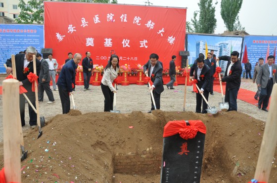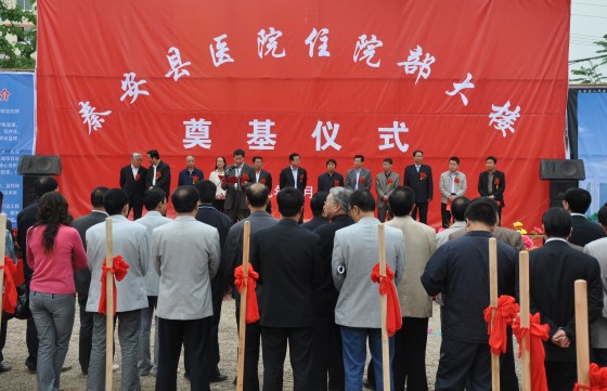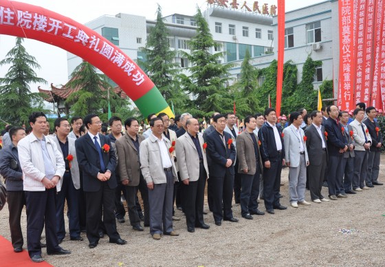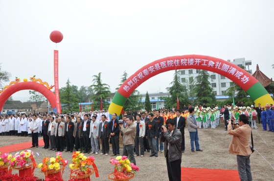 5月25日,秦安縣人民醫(yī)院院內(nèi)醫(yī)生們整齊著裝,個個面帶笑容,工程建設(shè)的工人們抱著要將該工程打造成精品工程的決心和信心,等待著住院樓的開工。9時30分,開工儀式正式開始。