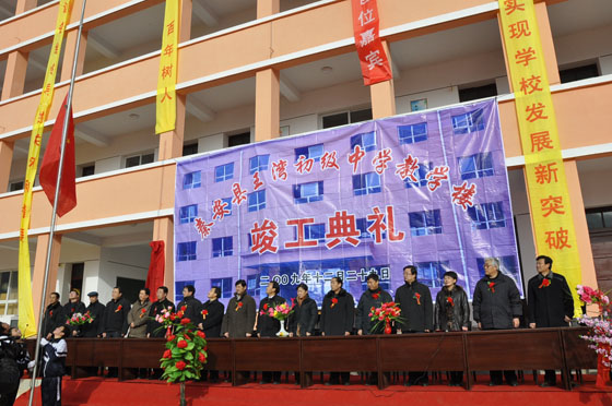 12月29日,秦安縣舉行王灣中學(xué)教學(xué)樓竣工典禮。甘肅省委組織部黨員教育處處長王建強(qiáng),天水市委副書記張應(yīng)華,市委常委、宣傳部長王光慶,市委常委、副市長郭奇若,市人大副主任黃郁,市政府副秘書長雷天錄,市體育局局長于國祥,市教育局副局長伏平,市紅十字協(xié)會(huì)常務(wù)副會(huì)長周長生以及秦安縣委書記陳天雄,縣人大常委會(huì)主任賈萬祥,縣委副書記、縣長王東紅,縣政協(xié)主席高霆鈞,縣委副書記程江芬,縣委常委、組織部長郭海軍,縣委常委、宣傳部長李尚平,縣人大常委會(huì)副主任魏千乙,副縣長、縣委辦主任郭雙江,縣政協(xié)副主席馬振寰出席了竣工典禮。