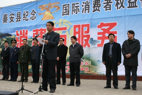 3月15日,秦安縣“3.15國際消費者權(quán)益保護日”紀念大會在興國文化廣場舉行,縣委常委、副縣長張璞銀,縣委常委、宣傳部長李尚平,縣人大副主任張光寧及宣傳、工商、商務、質(zhì)檢、電信等部門主要負責人,部分企業(yè)和個體戶代表參加了活動。