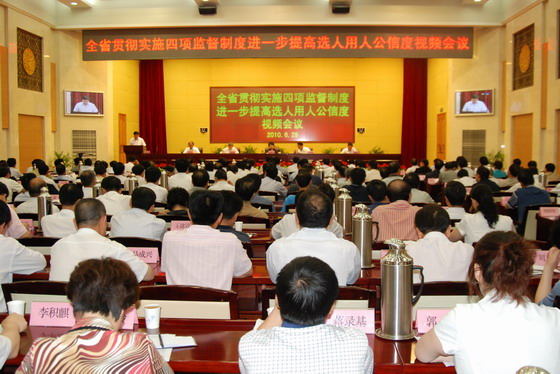 6月29日,甘肅省紀(jì)委、省委組織部聯(lián)合召開全省貫徹實施四項監(jiān)督制度進(jìn)一步提高選人用人公信度視頻會議。省紀(jì)委、省委組織部領(lǐng)導(dǎo)班子成員,省委各部委、省直各部門、省屬企事業(yè)單位主要負(fù)責(zé)人及人事(干部)處長在蘭州主會場參加了會議。各市州、縣區(qū)黨委書記、紀(jì)委書記、組織部長和有關(guān)人員在所在市、縣分會場參加了會議。省委常委、省紀(jì)委書記蔣文蘭主持會議,省委常委、省委組織部部長侯長安作了重要講話,省委常委、副省長劉永富出席了會議。