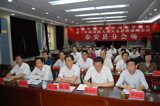 會議交流了2009年以來整治用人上不正之風(fēng)工作情況,要求各級黨委(黨組)和紀(jì)檢監(jiān)察機關(guān)、組織人事部門要切實采取有力措施,深入學(xué)習(xí)《黨政領(lǐng)導(dǎo)干部選拔任用工作責(zé)任追究辦法(試行)》等四項監(jiān)督制度,以更加堅決的態(tài)度、更加有力的措施,深入整治用人上不正之風(fēng),努力提高選人用人公信度。視頻會上,天水市委書記張景輝就推進(jìn)選人用人公信度工作的情況作了交流發(fā)言。蘭州、金昌、慶陽、酒泉市委在各自的分會場作了交流發(fā)言。