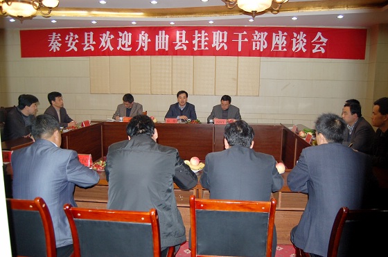 3月31日,秦安縣召開歡迎舟曲縣掛職干部座談會(huì)?h委書記徐健,縣委常委、組織部長(zhǎng)郭海軍出席會(huì)議并講話。5名舟曲縣掛職干部及掛職干部所在鄉(xiāng)鎮(zhèn)黨委書記參加了座談會(huì)。