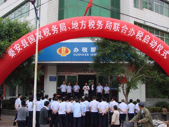 隨著縣委常委、副縣長李全明宣布秦安縣國家稅務(wù)局 秦安縣地方稅務(wù)局聯(lián)合辦稅正式啟動并與財(cái)政局長任發(fā)祥為聯(lián)合辦稅服務(wù)廳揭牌,標(biāo)志著秦安縣國、地稅聯(lián)合辦稅工作正式開始。揭開了秦安縣國、地稅納稅服務(wù)工作新的一頁。