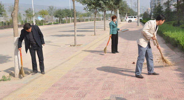 領(lǐng)導(dǎo)靠前指揮,打好“運(yùn)動(dòng)戰(zhàn)”。專(zhuān)門(mén)制定下發(fā)《秦安縣開(kāi)展環(huán)境衛(wèi)生“百日整治”活動(dòng)方案》,成立了領(lǐng)導(dǎo)小組,組建了辦公室,建立了動(dòng)態(tài)管理機(jī)制。堅(jiān)持以整治城市“八亂”為重點(diǎn),以落實(shí)“門(mén)前四包”責(zé)任書(shū)為突破口,對(duì)整治環(huán)境衛(wèi)生進(jìn)行層層發(fā)動(dòng)和全方位安排部署。由5名縣委常委、5名副縣長(zhǎng)和相關(guān)職能部門(mén)領(lǐng)導(dǎo)成立小組,每個(gè)小組包抓25個(gè)單位,采取現(xiàn)場(chǎng)指揮、重點(diǎn)跟蹤、問(wèn)責(zé)領(lǐng)導(dǎo)、限期整治等措施,從建立并落實(shí)環(huán)境衛(wèi)生保潔制度、環(huán)境衛(wèi)生日常清潔和保潔情況、“牛皮癬”清理,以及所承擔(dān)路段的衛(wèi)生清掃保潔情況,不間斷開(kāi)展督促落實(shí)工作。各鄉(xiāng)鎮(zhèn)加強(qiáng)對(duì)鄉(xiāng)村環(huán)境衛(wèi)生治理和動(dòng)態(tài)檢查,全縣迅速掀起環(huán)境衛(wèi)生集中整治熱潮。