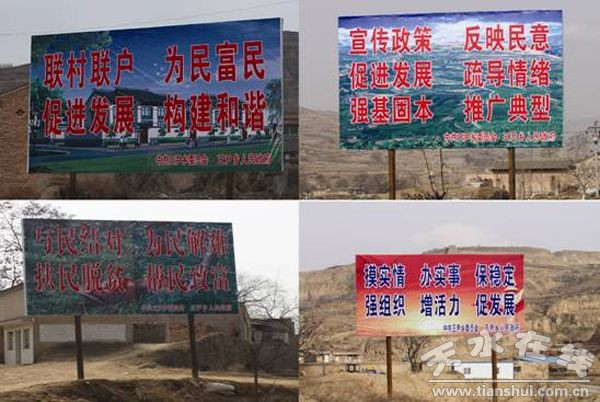 為了貫徹會(huì)議精神,秦安縣在310國道秦安段過街天橋,靖天路、葉蓮路、魏寺路、秦甘路、秦遠(yuǎn)路等路段和鄉(xiāng)鎮(zhèn)人口密集地懸掛永久性大幅宣傳標(biāo)語80多條。同時(shí)充分運(yùn)用秦安新聞網(wǎng)、秦安政府網(wǎng)、秦安電視臺、秦安廣播電臺等媒體,多層面、多角度廣泛深入宣傳。通過正面的宣傳引導(dǎo)使各級各單位和廣大干部群眾對“聯(lián)村聯(lián)戶、為民富民”行動(dòng)的指導(dǎo)思想、基本原則、目標(biāo)要求等到充分的認(rèn)識,使各級各單位和廣大干部工作的實(shí)踐得到及時(shí)反映,為全縣“聯(lián)村聯(lián)戶、為民富民”行動(dòng)開展?fàn)I造了良好的輿論氛圍。