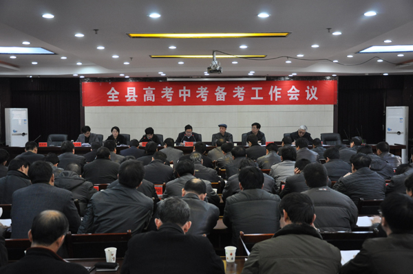 2月27日,秦安縣召開高考中考備考工作會議,總結回顧上學年全縣高考、中考工作,查找存在的問題與不足,分析今年全縣高考、中考面臨的形勢,進一步統(tǒng)一思想,堅定信心,明確任務,狠抓落實,為全力打好2012年高考、中考備考攻堅戰(zhàn),確保今年高考、中考成績再上一個新臺階,促進全縣教育事業(yè)又好又快發(fā)展奠定基礎?h委書記王東紅,縣人大常委會主任賈萬祥,縣委副書記、縣長程江芬,縣政協(xié)主席高霆鈞,縣委常委、宣傳部長李愛仙,縣人大副主任魏千乙,副縣長王成成以及各完中、初中學校校長,學區(qū)校長,教體局股級以上干部共90多人參加會議。會議由縣委副書記、縣長程江芬主持。