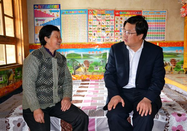 在胡存娣家中,王東紅坐在炕頭上,與胡存娣親切交談,噓寒問暖,詳細詢問家庭收入及目前生活中的主要困難和今后脫貧致富的打算。王東紅說:“這次我來是了解基本情況,以后我還要經(jīng)常來幫助你們理清致富思路,發(fā)展富民產(chǎn)業(yè),直到你們家的生活水平得到提高,真正過上小康生活。”通過一番交談后得知,她家有6口人(胡存娣夫婦、女兒和女婿及兩個外孫),經(jīng)濟來源主要靠女婿打工為主,生活困難。王東紅說:“你們老兩口一定要把女婿當(dāng)做自己的兒子一樣看待,家庭和睦了才會有大發(fā)展,你們一定要樹立致富奔小康的信心,通過咱們的共同努力,努力改善家庭生產(chǎn)生活條件,成為村上的小康戶!