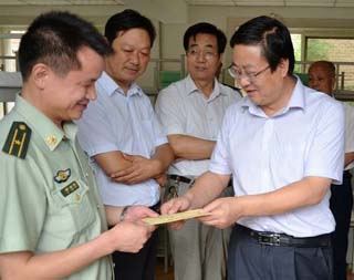 7月31日,在“八一”建軍節(jié)來臨之際,秦安縣委書記王東紅,縣人大常委會主任賈萬祥,縣委副書記、縣長程江芬,縣政協(xié)主席高霆鈞,縣委常委、政法委書記丁曉來,縣政府副縣長羅增芳等四大組織領導帶領縣委辦、政府辦、民政局等部門負責人,先后來到縣武裝部、交警隊、消防隊、消防科、武警中隊等營地,慰問了駐秦部隊官兵,給他們送去了慰問品和慰問金,并向他們致以節(jié)日的問候。