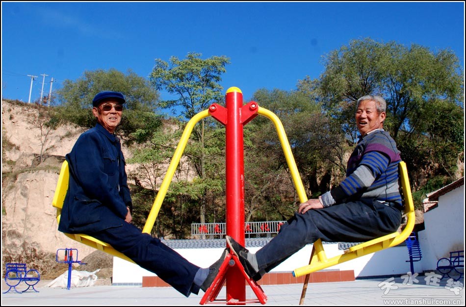 10月24日,湛藍(lán)的天空上飄著朵朵的白云,槐龍村的村民們聚在村級文化廣場上,有的在太空漫步器上踏著,有的在壓蹺蹺板,有的蕩秋千,廣場上回蕩著歡快的笑聲。