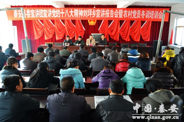 12月7日下午,秦安縣委宣講團在劉坪鄉(xiāng)政府舉行宣講黨的十八大精神報告會?h委宣講團第二宣講組副組長、縣委黨校常務副校長馬永強,縣文明辦,縣黨員電化教育室負責人出席了會議,鄉(xiāng)機關全體干部職工、鄉(xiāng)直各單位負責人、各村支書、主任共計100余人參加了會議。