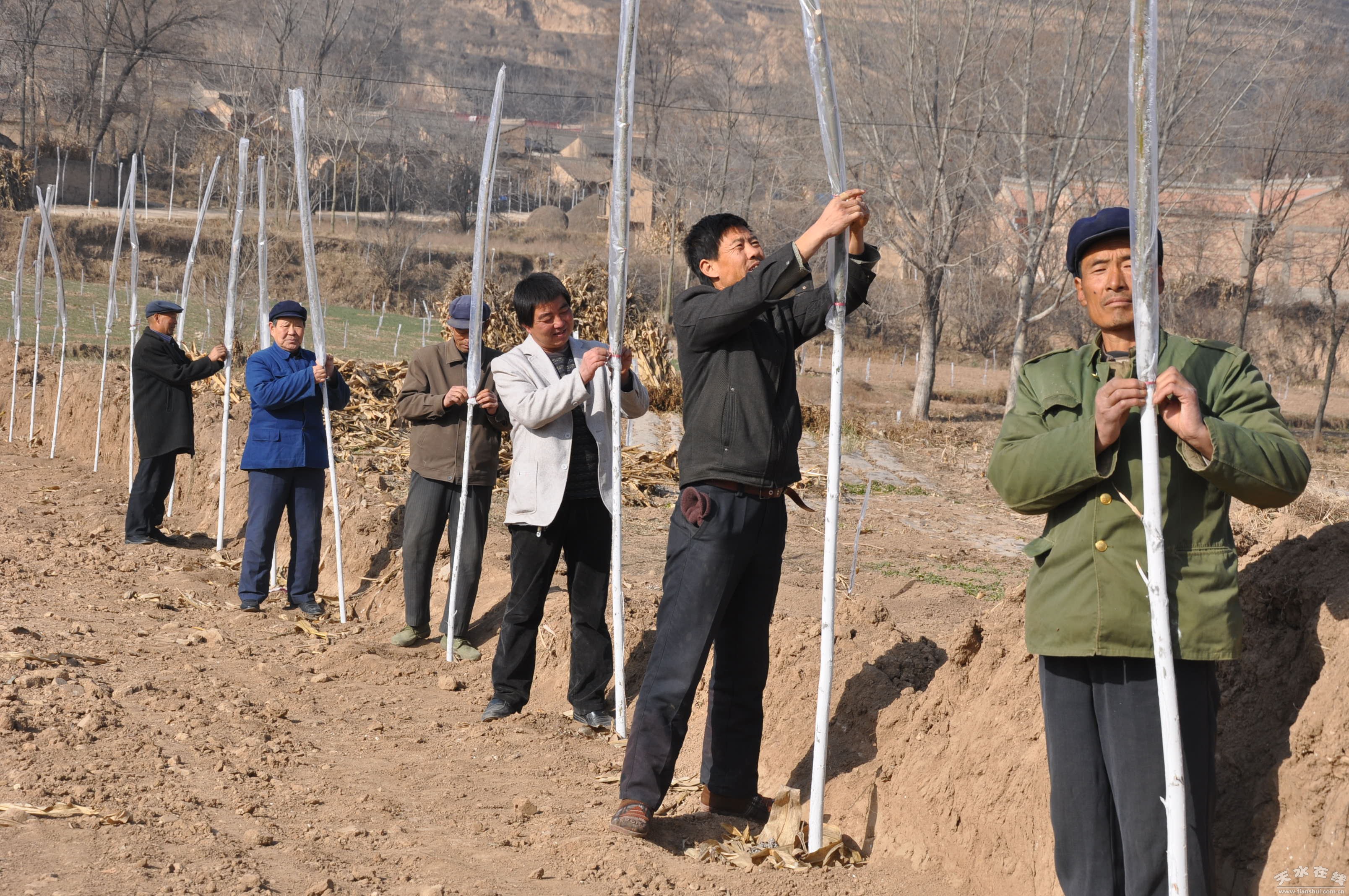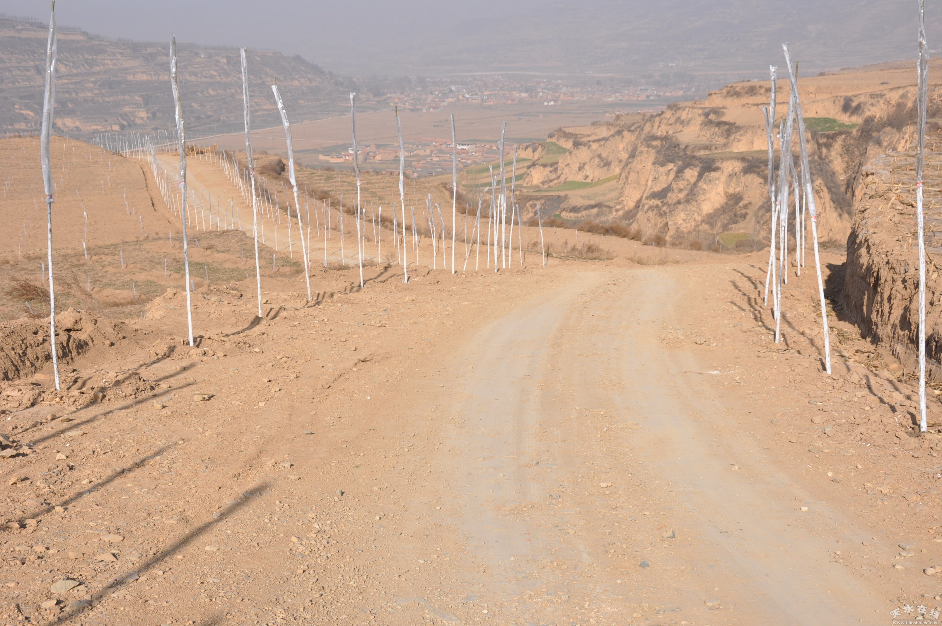 12月8 日,驅(qū)車從五營柏油路入口,再到臥牛坪優(yōu)質(zhì)果園梁頂,再到另一出口,真正感受到臥牛坪優(yōu)質(zhì)果園基地被一條長長的環(huán)形路所包圍。陪同采訪的鄉(xiāng)黨委書記孫中平告訴記者,這條路是配合臥牛坪優(yōu)質(zhì)果園基地新修的,路面寬8 米,長12公里,大大方便建園和平時(shí)作務(wù)。同時(shí)按照可持續(xù)發(fā)展的思路,達(dá)到生態(tài)效益和經(jīng)濟(jì)效益一致,產(chǎn)業(yè)路兩旁共栽植金絲柳7000棵,每2、5米一棵。當(dāng)天,還有不少村民自管自護(hù),給新栽的金絲柳穿保溫袋?吹贸鰪V大群眾打造自己生態(tài)家園的熱情。