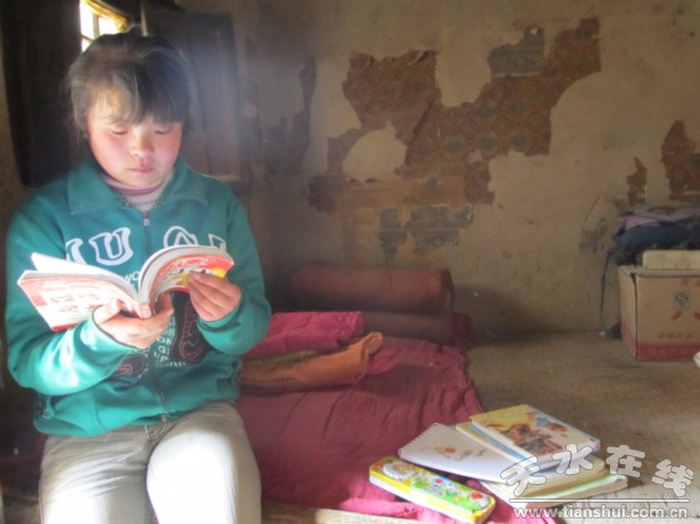 一邊是年近花甲、身患重度關(guān)節(jié)炎行動(dòng)不便的父親,一邊是身受脈管炎等疾病折磨的聾啞智障母親,18歲的秦安縣魏店鄉(xiāng)大灣村梨樹(shù)中學(xué)9年級(jí)學(xué)生劉亮霞十多年來(lái),經(jīng)常天不亮就起床操持一家的生計(jì)。伺候父母、做家務(wù)、干農(nóng)活的事都過(guò)早地落在她稚嫩的肩頭。然而即使這樣,和其他孩子一樣能背起書(shū)包進(jìn)學(xué)堂一直都是她不愿割舍的夢(mèng)想。自打7歲多上學(xué)以來(lái),因父母病變中途休學(xué)兩次,如今18歲的她磕磕絆絆才升到9年級(jí)——