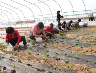 (圖為郭嘉鎮(zhèn)組織人員栽植行道樹)