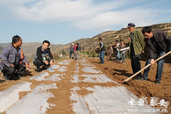 金秋十月,在廣袤的秦安大地上,機(jī)聲隆隆、歡聲笑語。平展的梯田地里,廣大群眾正在林業(yè)、果業(yè)部門的枝術(shù)人員及鄉(xiāng)干部的指導(dǎo)下,測量挖坑,平整土地,秋覆膜及秋季建園工作有序展開。
