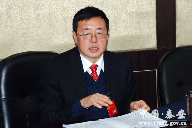 2月8日上午,秦安縣人大常委會主任郭海軍與代表們一起審議政府工作報告。