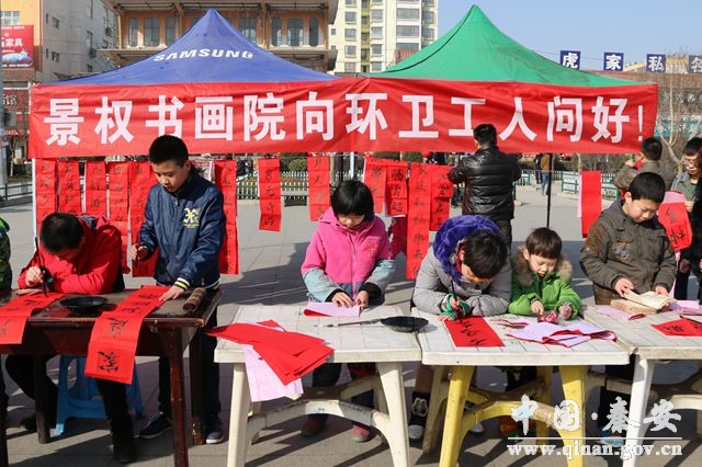 ·秦安景權(quán)書畫院義務(wù)為環(huán)衛(wèi)工寫春聯(lián)送祝福(圖)
