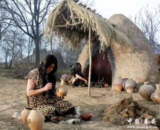 這里還陳列著不少石斧、石刀、陶刀等農業(yè)生產工具,貯存物品的大袋形窯穴的建造,大型陶甕、缸、罐等貯藏器,還有我國最早的農業(yè)標本炭化稷和油菜籽,這一切都說明和反映了當時經濟形態(tài)屬于定居的以農業(yè)為主的類型。
