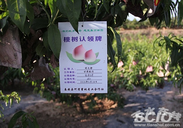 秦安縣何灣蜜桃生產(chǎn)基地桃樹認領(lǐng)牌(關(guān)燃敏 攝)