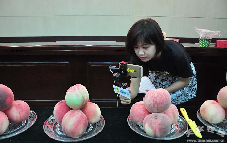 ▲天水在線云記者現(xiàn)場直播“桃王”和“桃后”出爐全過程