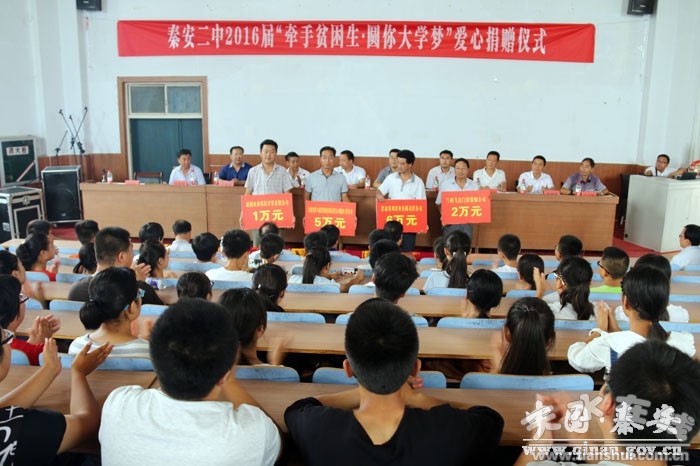 據(jù)悉,此次2016“牽手貧困大學生·圓你大學夢”活動是由秦安二中歷屆校友發(fā)起,縣二中歷屆校友孫進義、張明祥、鄭建軍、王耀斌等共計捐助愛心資金14萬元,使60名品學兼優(yōu)的貧困大學生得到資助。