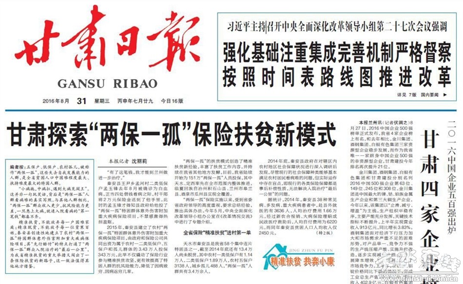甘肅探索“兩保一孤”保險(xiǎn)扶貧新模式