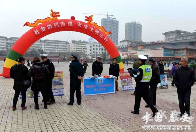 12月2日是第五個“全國交通安全日”,為營造“社會協(xié)同治理,安全文明出行”的濃厚氛圍,提升市民交通安全、法制和文明意識,秦安縣公安局交警大隊積極聯(lián)系運(yùn)管、消防、教育、司法等相關(guān)部門,在城區(qū)文化廣場組織開展內(nèi)容豐富的集中宣傳活動,收到了良好的宣傳效果。