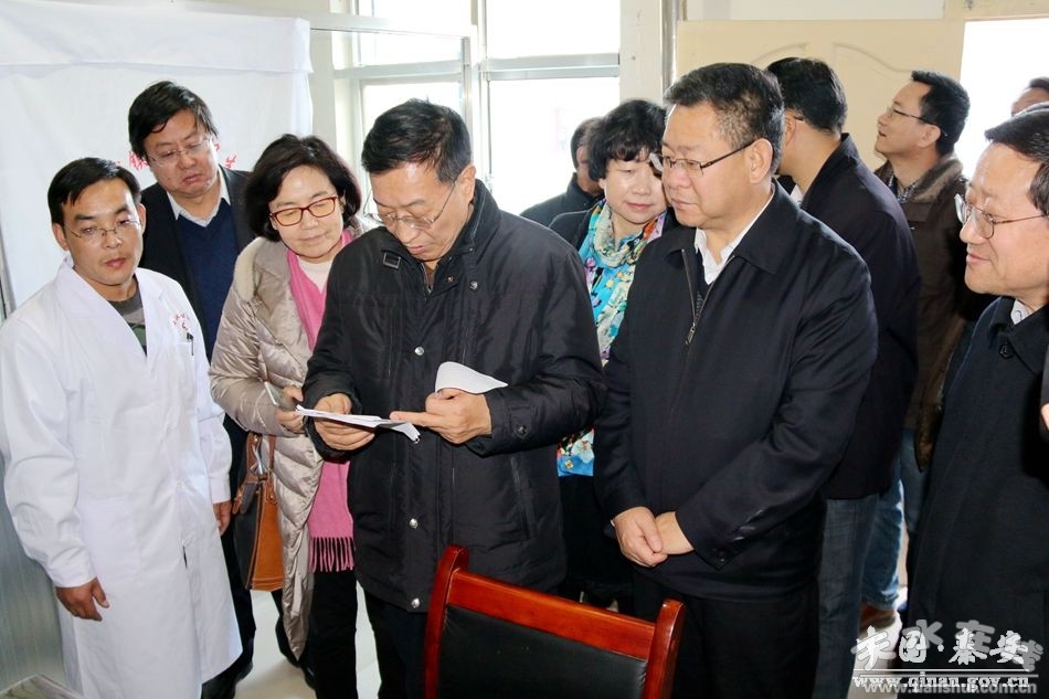 12月5日,省衛(wèi)計(jì)委主任劉維忠一行在秦安縣檢查考核衛(wèi)生計(jì)生工作。市人大常委會副主任、市衛(wèi)計(jì)委主任蒲朝暉,市政府副市長張建杰,市衛(wèi)計(jì)委副主任李姝,縣委書記王東紅,縣政府副縣長于劍鋒,縣政協(xié)副主席、縣衛(wèi)生計(jì)生局局長張榮生及市、縣相關(guān)部門負(fù)責(zé)人一同參加。