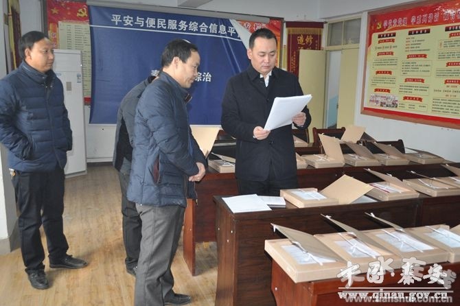 12月13日,秦安縣委常委、組織部長(zhǎng)楊棟來(lái)到葉堡、安伏、王鋪等鄉(xiāng)鎮(zhèn),通過(guò)實(shí)地查看、聽(tīng)取匯報(bào)、查閱資料等方式,對(duì)村“兩委”換屆選舉、“兩學(xué)一做”學(xué)習(xí)教育、學(xué)習(xí)貫徹黨的十八屆六中全會(huì)精神、村級(jí)陣地建設(shè)等基層黨建重點(diǎn)工作任務(wù)落實(shí)情況進(jìn)行督查指導(dǎo),并就下階段工作提出了要求。