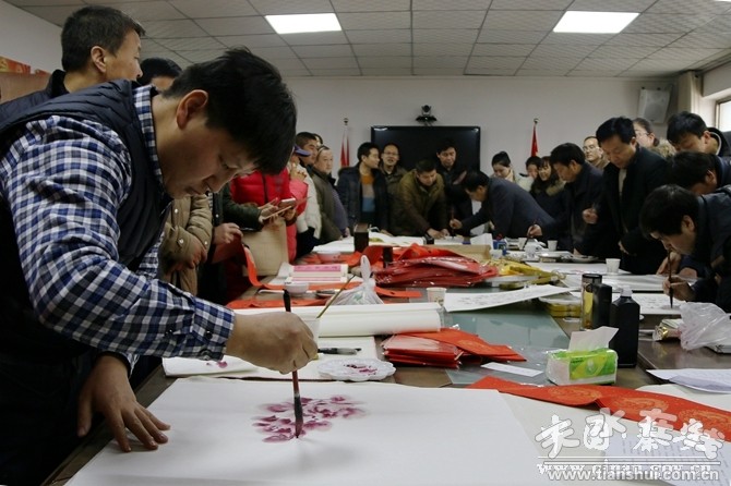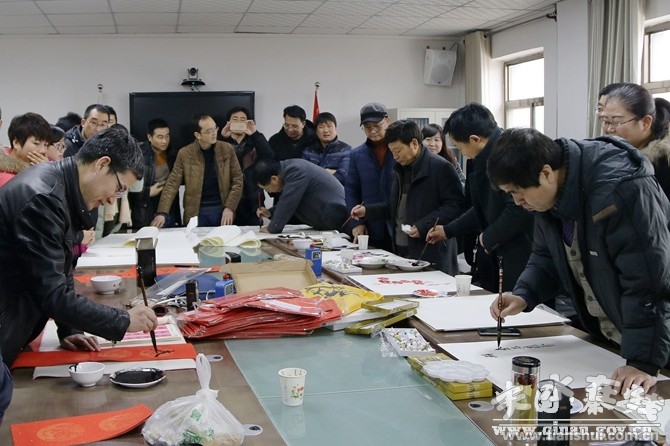 發(fā)放儀式結(jié)束后,學院書畫協(xié)會會員在西川鎮(zhèn)政府三樓會議室現(xiàn)場揮毫潑墨,為聯(lián)系點群眾現(xiàn)場創(chuàng)作書畫作品100余幅,對聯(lián)300余幅,帶去了學院黨政領(lǐng)導和廣大師生對雙聯(lián)點群眾的關(guān)懷,為他們提前送上新春的祝福,增添了節(jié)日喜慶祥和的氣氛。