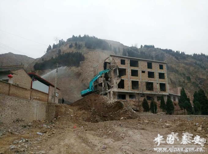3月9日,秦安縣組織城管執(zhí)法局、國(guó)土資源局、房屋征收中心等有關(guān)部門(mén)、單位和興國(guó)鎮(zhèn)人民政府,對(duì)位于何川村東山根一棟已建成四層框架主體的違法建筑進(jìn)行依法強(qiáng)制拆除。