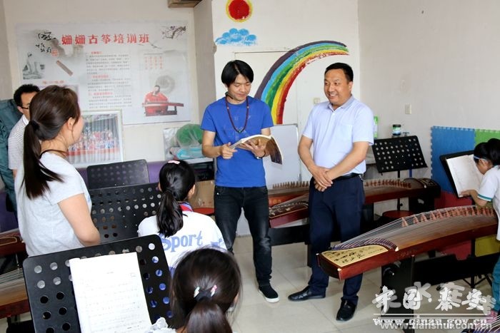 徐東明一行先后來到大地灣印象酒店、縣職校、古箏培訓(xùn)班等地,查看了會議室布置、樂舞和古箏排練情況,詳細(xì)了解了各項(xiàng)籌備工作。在檢查中,徐東明一行還為演職人員送去了遮陽帽。