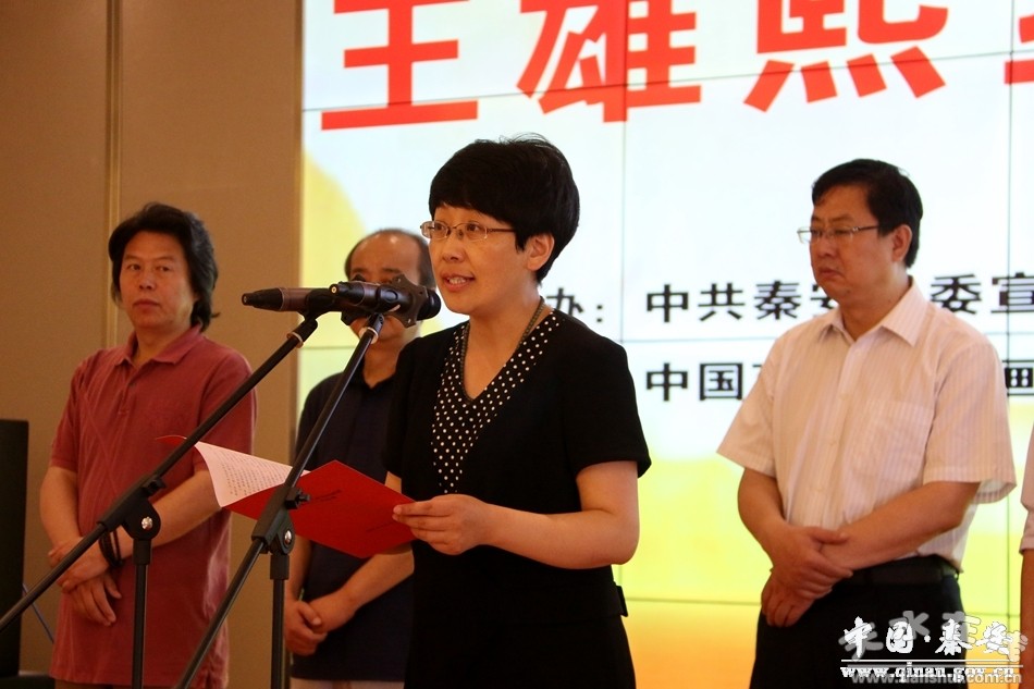 儀式上,秦安縣委副書記、縣長(zhǎng)程江芬作了致辭;王雄熙作了發(fā)言并向中共秦安縣委、縣政府及秦安大地灣印象酒店分別贈(zèng)送了作品;最后,與會(huì)領(lǐng)導(dǎo)與廣大干部職工、書畫愛好者一同參觀書畫展。開展儀式由秦安縣委常委、宣傳部部長(zhǎng)徐東明主持。