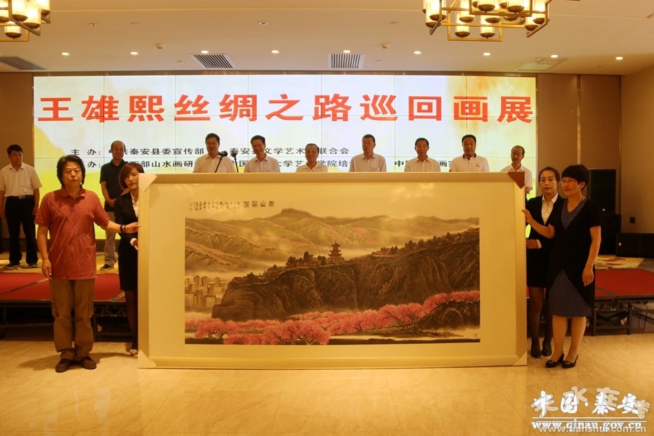 在中國(guó)·秦安2017(丁酉)年祭祀中華人文始祖女媧典禮暨文化旅游節(jié)即將開幕之際,為了豐富廣大人民群眾的文化生活,弘揚(yáng)中國(guó)優(yōu)秀傳統(tǒng)文化,努力營(yíng)造文明和諧的文化氛圍,不斷推動(dòng)秦安縣文化事業(yè)的繁榮發(fā)展。6月19日上午,王雄熙絲綢之路巡回畫展在秦安縣大地灣印象酒店開展。