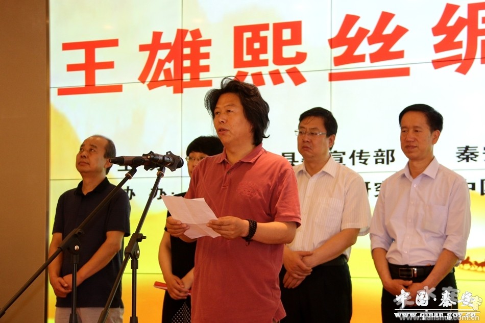 程江芬在致辭中首先代表中共秦安縣委、縣人大、縣政府、縣政協(xié)向王雄熙先生來(lái)家鄉(xiāng)舉辦畫展表示熱烈的歡迎!她說(shuō),秦安自古人杰地靈,文化底蘊(yùn)厚重,歷史上曾出現(xiàn)過(guò)一批知名的書畫家,近年來(lái)書畫新秀更是層出不窮,為秦安文化事業(yè)的快速發(fā)展提供了強(qiáng)大的支撐和源動(dòng)力。王雄熙是從秦安走出的優(yōu)秀書畫家,生于西部高原秦安,成長(zhǎng)于西部高原,他酷愛繪畫藝術(shù),多年來(lái)潛心研習(xí)中國(guó)水墨畫,逐漸形成了自己獨(dú)特的西部高原山水繪畫風(fēng)格。希望全縣廣大書畫愛好者珍惜機(jī)會(huì),加強(qiáng)與王雄熙及各位書畫家的互動(dòng)交流,以更高的創(chuàng)作熱情和更加嚴(yán)謹(jǐn)?shù)乃囆g(shù)態(tài)度,創(chuàng)作出更多具有優(yōu)秀文化底蘊(yùn)、充分彰顯時(shí)代特色的書畫作品,努力把全縣文化藝術(shù)事業(yè)推向新層次、新水平、新境界。此次展出的80余幅作品是王雄熙為弘揚(yáng)西部?jī)?yōu)秀傳統(tǒng)文化,創(chuàng)作的以“絲綢之路”為主題的優(yōu)秀作品,他展現(xiàn)給家鄉(xiāng)人民的不僅僅是情趣高雅的繪畫藝術(shù),同時(shí)表達(dá)了濃濃的游子之情。