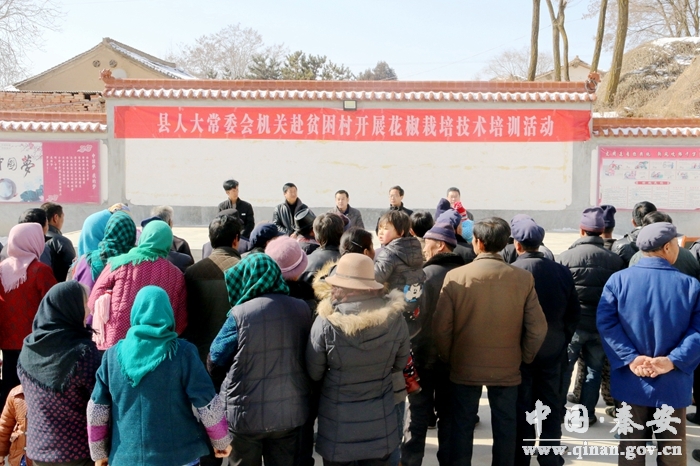 為了讓聯(lián)系貧困村過上一個(gè)積極向上、幸福祥和的春節(jié),進(jìn)一步助推脫貧攻堅(jiān),幫助貧困村培育富民產(chǎn)業(yè),調(diào)整農(nóng)業(yè)產(chǎn)業(yè)結(jié)構(gòu),1月31日,縣人大常委會(huì)機(jī)關(guān)在中山鎮(zhèn)東寨村開展了花椒栽培技術(shù)培訓(xùn)活動(dòng)和文化下鄉(xiāng)活動(dòng)。