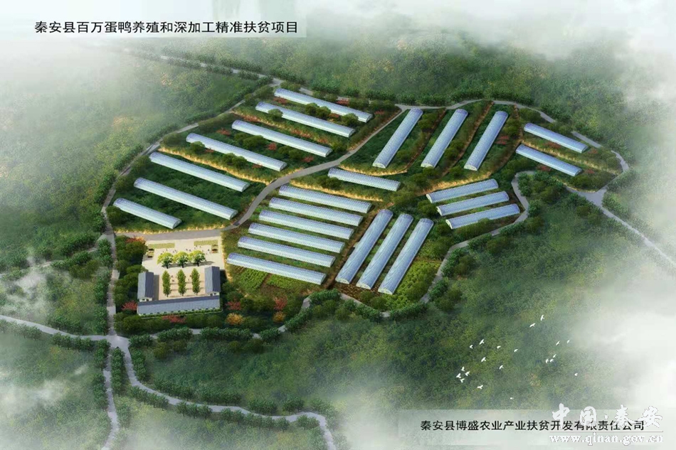 位于中山鎮(zhèn)劉箕村的蛋鴨養(yǎng)殖基地,是縣委、縣政府多方考察論證,由秦安縣博盛農(nóng)業(yè)產(chǎn)業(yè)扶貧開發(fā)有限責(zé)任公司引進(jìn)實施的周期短、易操作、見效快的“短平快”農(nóng)業(yè)扶貧項目,總投資2523.70萬元,其中天津援建1000萬元;乜傆玫孛娣e為161374.96㎡,目前完成流轉(zhuǎn)土地125畝,基地道路硬化3.2公里,總建筑面積30299.48㎡,可養(yǎng)殖蛋鴨10萬只。