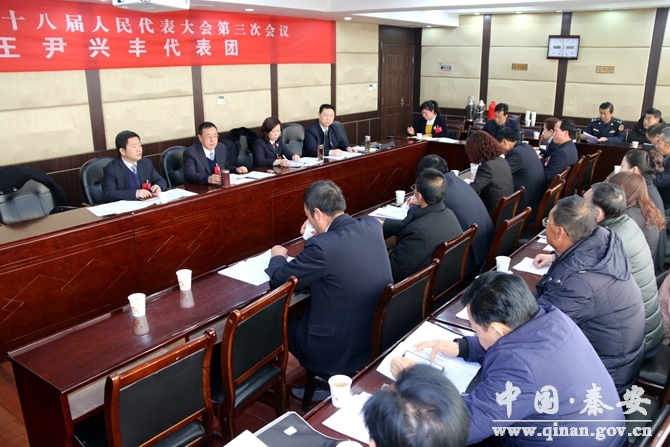 1月8日上午,出席秦安縣第十八屆人民代表大會第三次會議的人大代表,分團審議了政府工作報告。縣人大常委會主任郭海軍與王尹興豐代表團的代表一起審議政府工作報告。