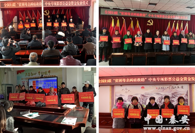 近日,秦安縣婦聯(lián)以各鎮(zhèn)分散發(fā)放的形式,積極開展了“貧困母親兩癌救助專項(xiàng)基金”發(fā)放活動(dòng),為全縣95名農(nóng)村“兩癌”貧困婦女每人發(fā)放救助金1萬元。