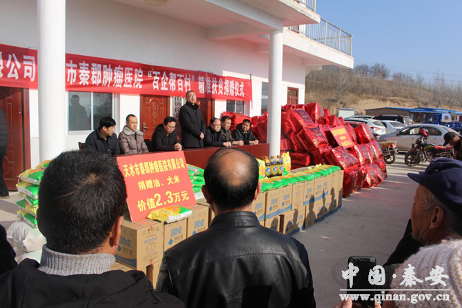 愛心企業(yè)代表天水市秦郡腫瘤醫(yī)院(西京醫(yī)院秦安幫扶醫(yī)院)院長何宏代表醫(yī)院向徐張村的鄉(xiāng)親們表達了慰問和祝福。他說,這次醫(yī)院給鄉(xiāng)親們帶來了大米、食用油和棉被等生活用品,就是希望在春節(jié)來臨之際表達一下醫(yī)院對鄉(xiāng)親們的關心和支持。他希望徐張村的鄉(xiāng)親們在秦安縣委、縣政府的正確領導下,在眾多愛心企業(yè)的幫扶下,能夠早日脫貧致富,盡快過上紅紅火火的美好日子。