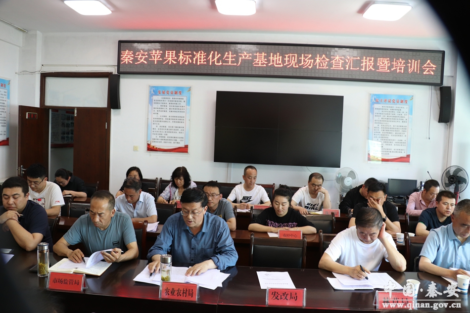 在秦安縣農(nóng)業(yè)農(nóng)村局召開的秦安縣創(chuàng)建全國綠色食品原料(秦安蘋果)標(biāo)準(zhǔn)化生產(chǎn)基地現(xiàn)場檢查匯報(bào)暨培訓(xùn)會上,秦安縣農(nóng)業(yè)農(nóng)村局相關(guān)負(fù)責(zé)人匯報(bào)了秦安縣創(chuàng)建全國綠色食品(秦安蘋果)標(biāo)準(zhǔn)化生產(chǎn)基地工作進(jìn)展情況;吳進(jìn)賢介紹了全省綠色標(biāo)準(zhǔn)化基地創(chuàng)建情況;秦文龍就基地創(chuàng)建工作應(yīng)如何創(chuàng)建、注意事項(xiàng)等進(jìn)行了詳細(xì)地講解和培訓(xùn)。在培訓(xùn)過程中,技術(shù)人員對基地創(chuàng)建中遇到的問題進(jìn)行了咨詢和交流。 秦安縣創(chuàng)建領(lǐng)導(dǎo)小組成員單位負(fù)責(zé)人、農(nóng)業(yè)農(nóng)村局下屬單位負(fù)責(zé)人及技術(shù)骨干、對接企業(yè)代表30多人參加了培訓(xùn)。